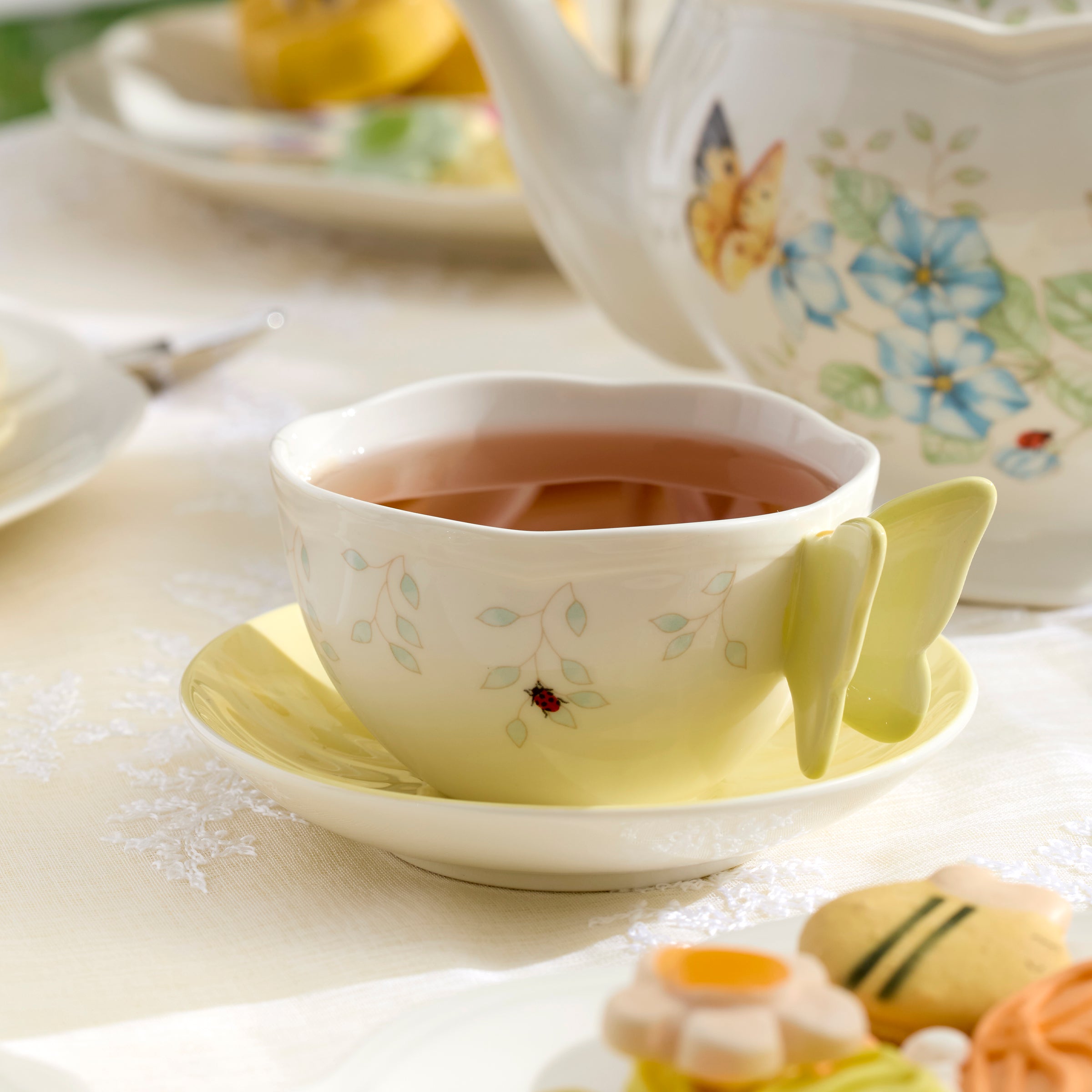 A sculptural butterfly serves as the cup’s handle in the charming Butterfly Meadow Floral Yellow Cup and Saucer. Both the handle and saucer are bathed in sunny yellow to form an ideal partnership with the durable white ceramic porcelain. This Lenox classic is both dishwasher and microwave-safe