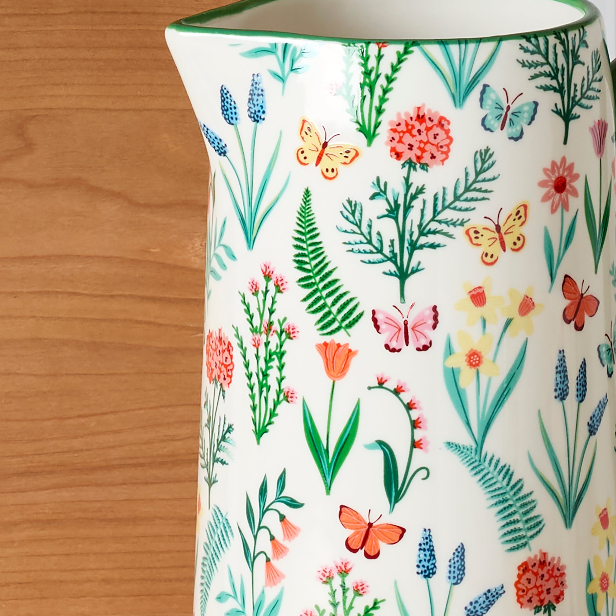 Inspired by the optimism of early spring, this First Blooms pitcher renews the table with bright florals, happy butterflies, and adorably refreshing style.