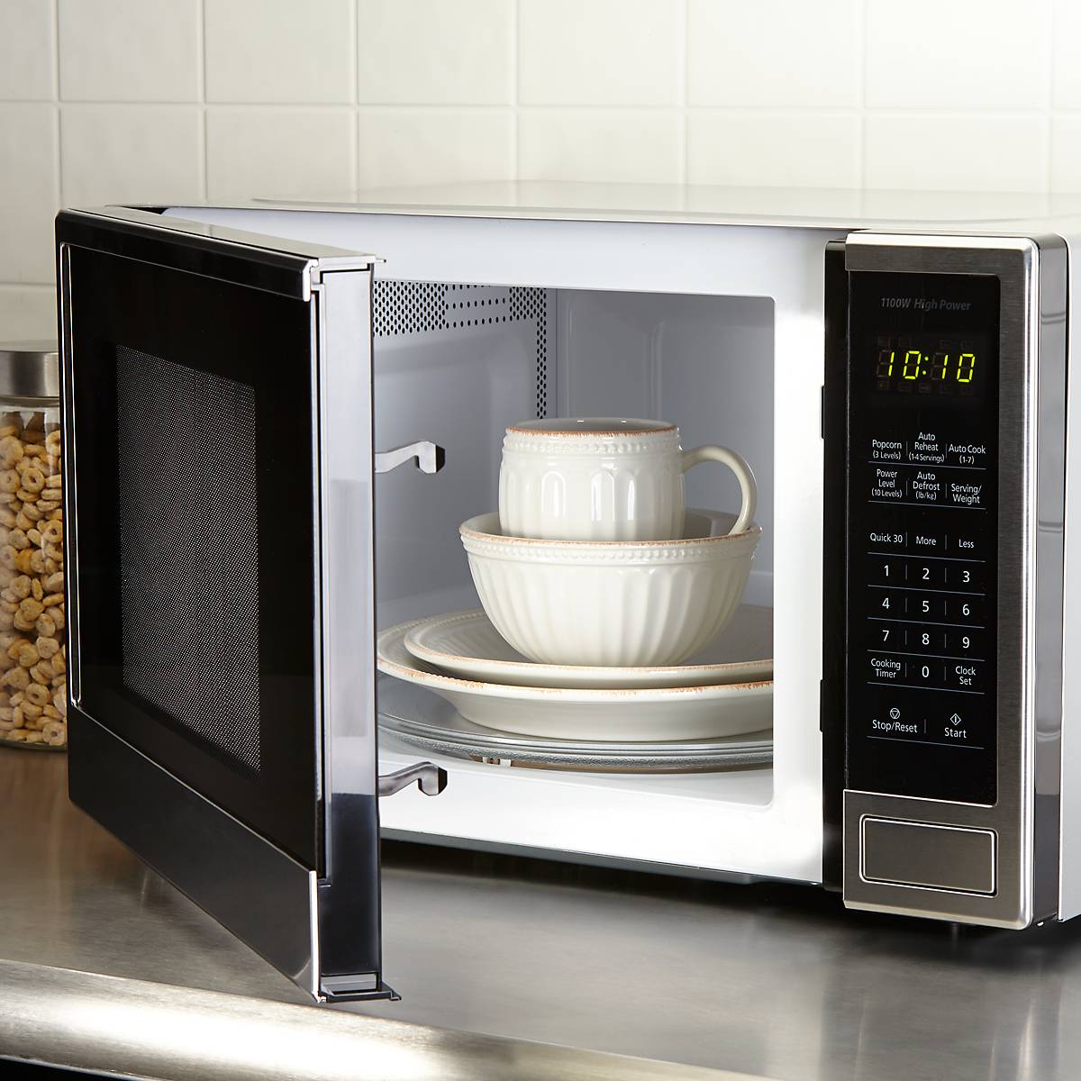 Including a gentle curved border accented with hand-applied tea stains, this four-piece place setting, crafted of durable white ceramic stoneware, gleams with beads and thick grooves that add texture. This item is microwave and dishwasher-safe, for added convenience.