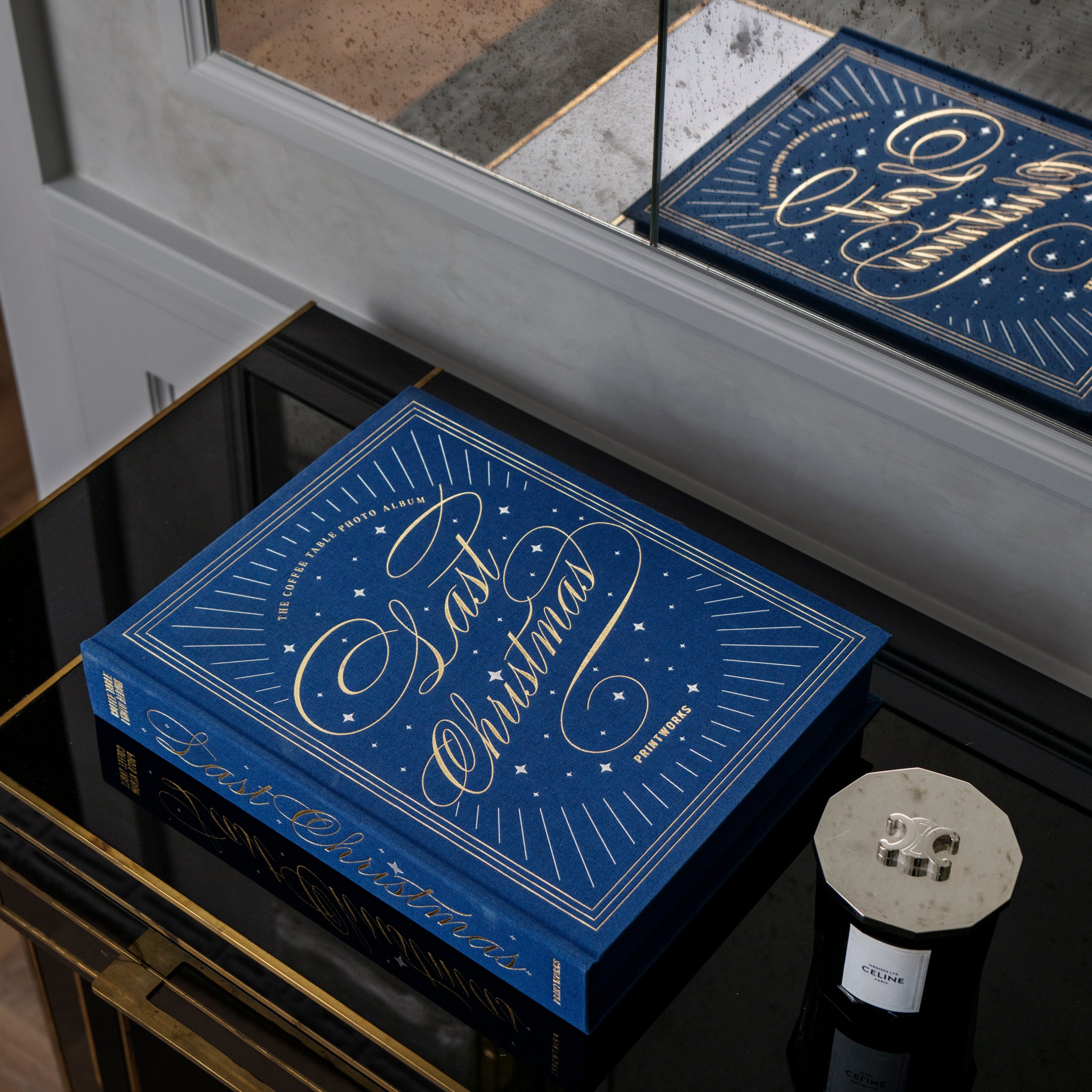 Discover the holiday coffee table photo album dedicated to the best season of the year. “Last Christmas” features a beautiful navy cloth cover with gold foiled text. High-quality black photo paper awaits inside, ready to be decorated. Place it on your coffee table to keep those moments always within reach while elevating your home decor. From Printworks, a brand we love.