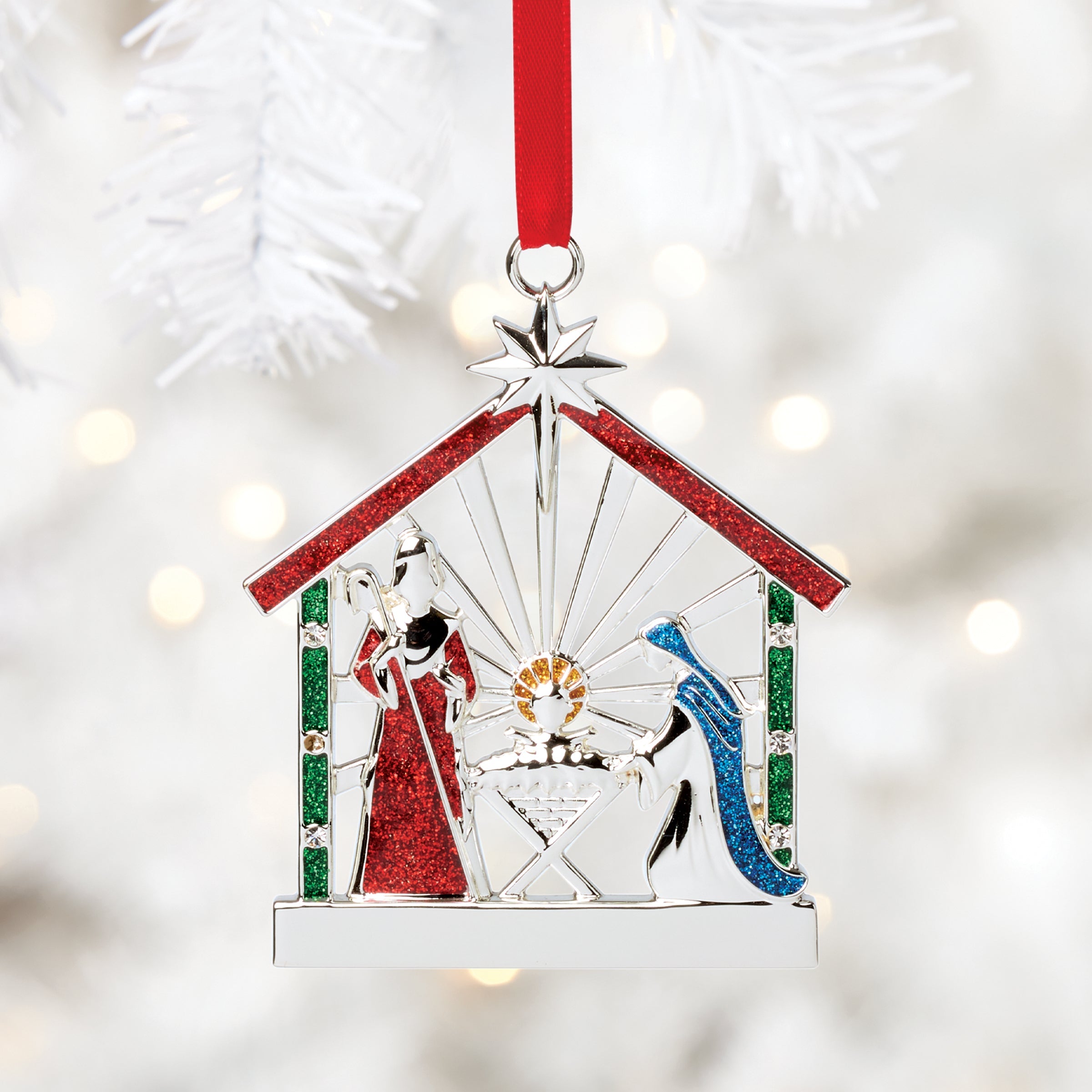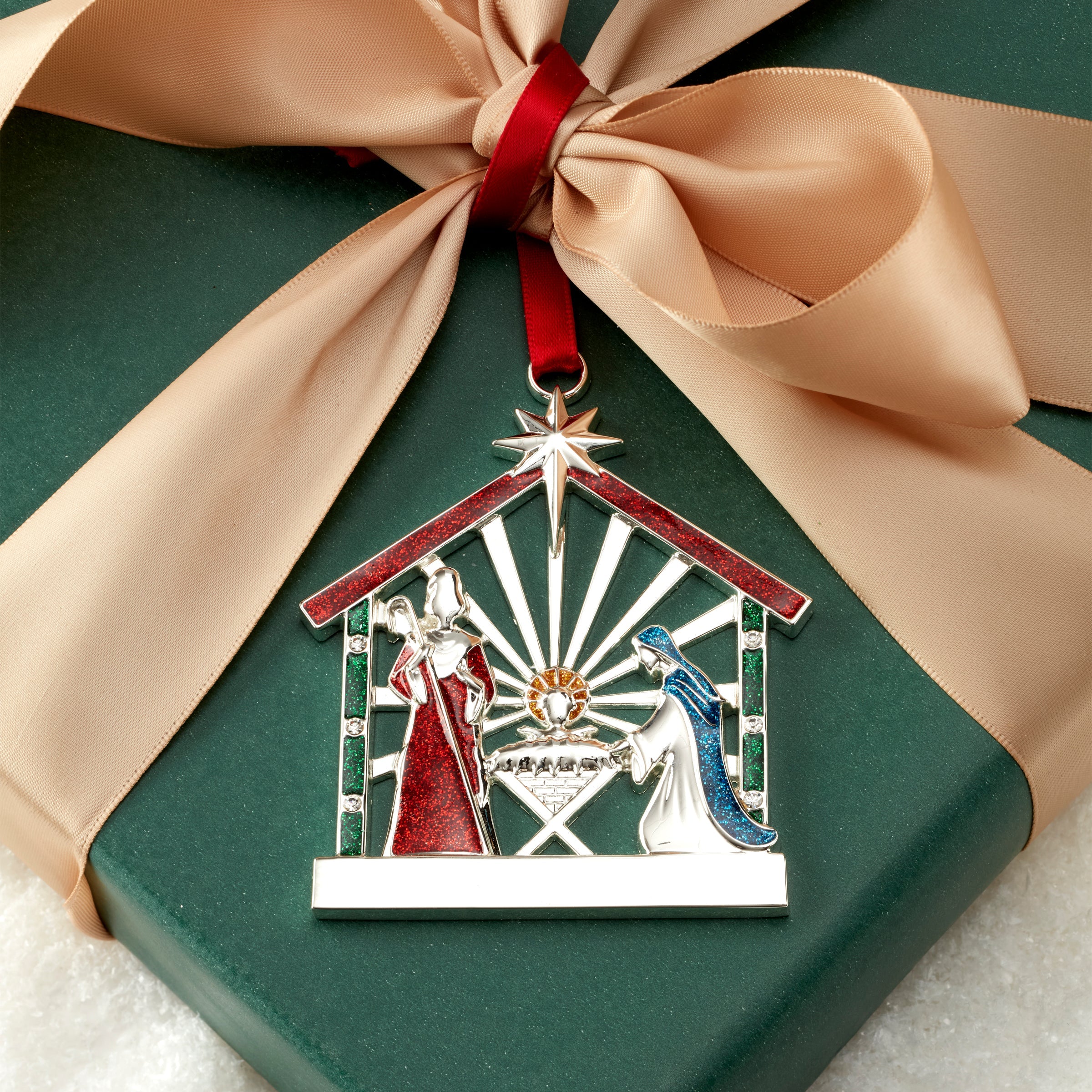 Bring the spirit of Christmas to life with this nativity scene, a stunning tribute to the season’s most cherished story. Crafted in gleaming silverplate, this ornament adds a touch of elegance and traditional charm to your tree, year after year.